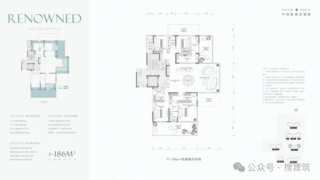 约286平户型,作为该项目的超高配户型,全景户属露台式庭院,一户一景。